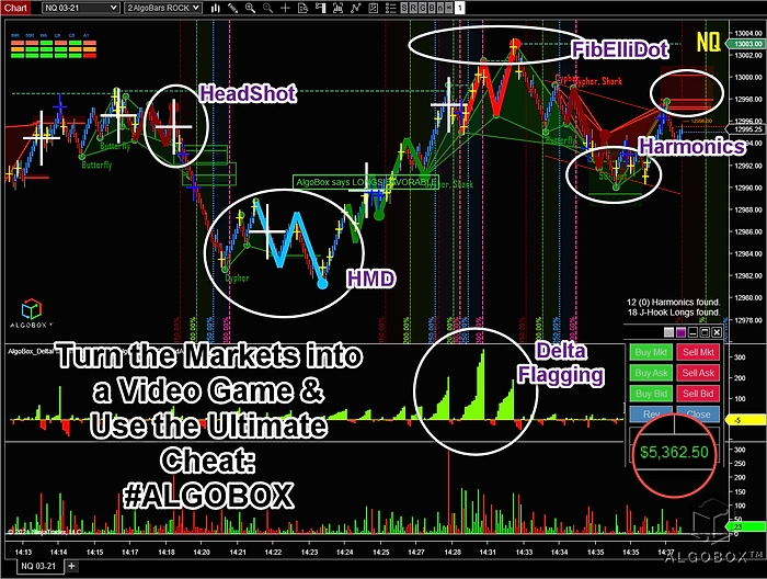 Algobox simplifies trading any market into a video game, with its algorithmic, multi-timeframe, multi-confluence, multi-sensory trading system.